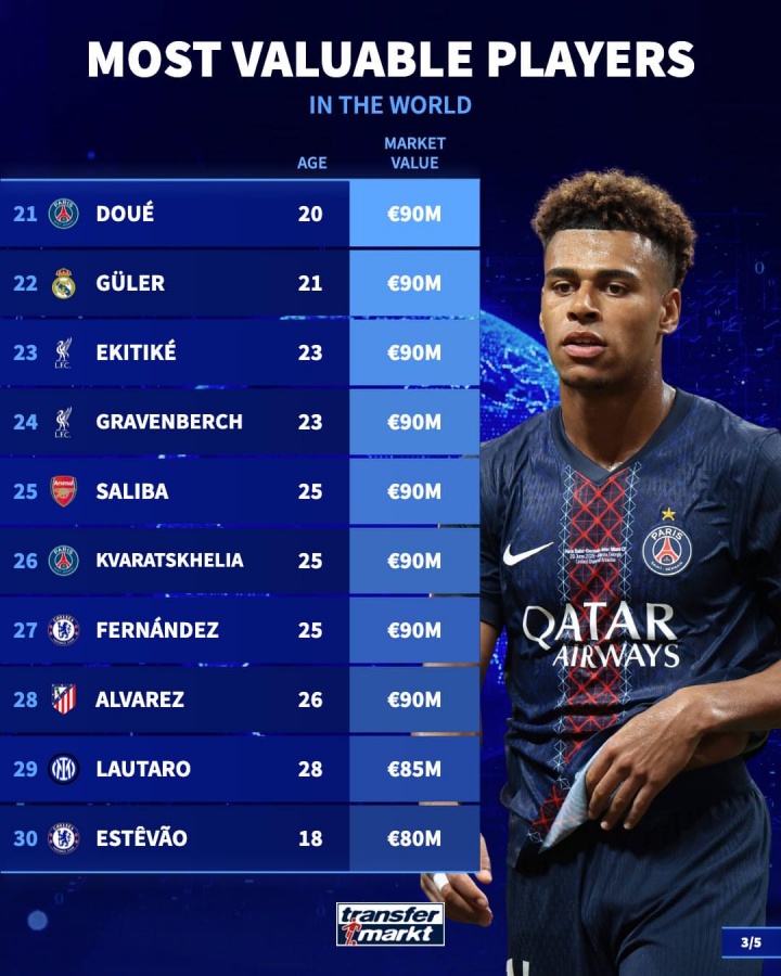 27-恩佐(切尔西),25岁,9000万欧