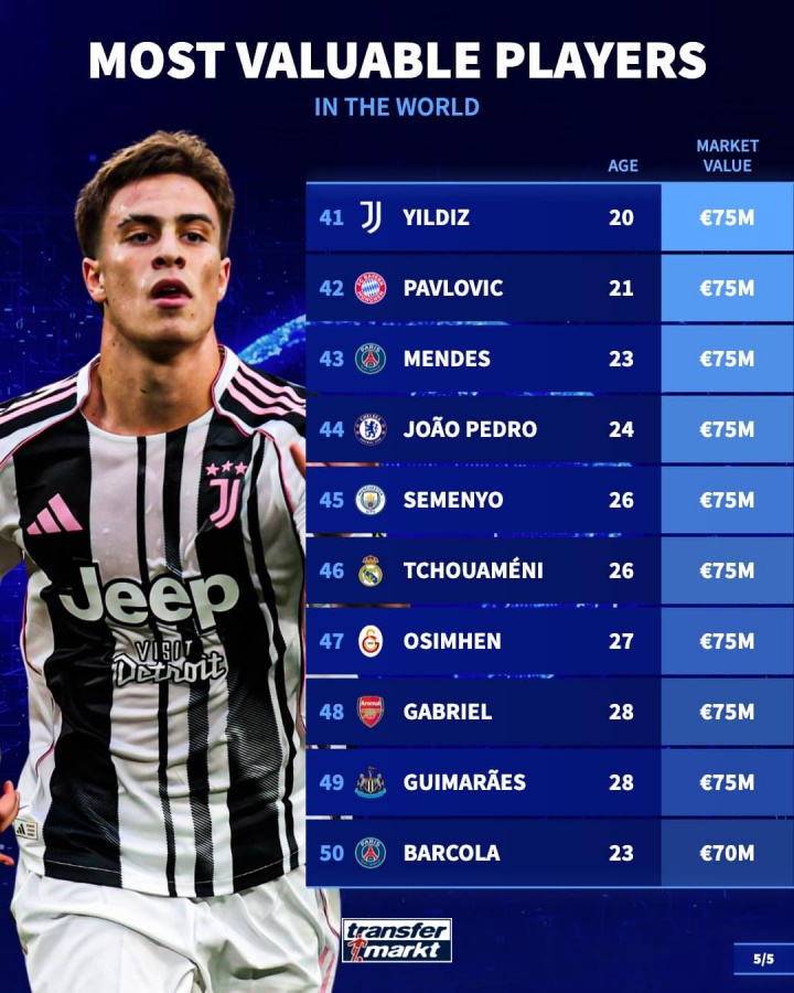 41-伊尔迪兹(尤文),20岁,7500万欧
